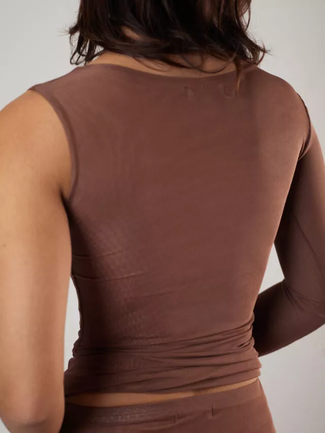 Blusa Assimétrica Tule Marrom