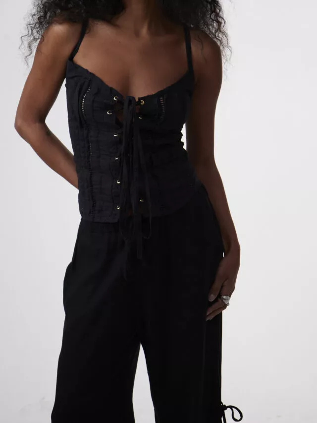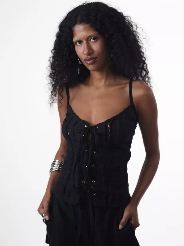 DESCRIÇÃO: Blusa confeccionada em algodão laise 100% algodão, tem modelagem justa que valoriza a silhueta, alças finas com regulador e acabamento em ilhós dourado para um toque sofisticado e amarração na frente, possibilitando regular a abertura da blusa. Não possui forro e pode ser usada com sutiã ou tapa seios. A Blusa Laise Ilhós combina a delicadeza da laise com a modernidade do ajuste frontal por amarração.