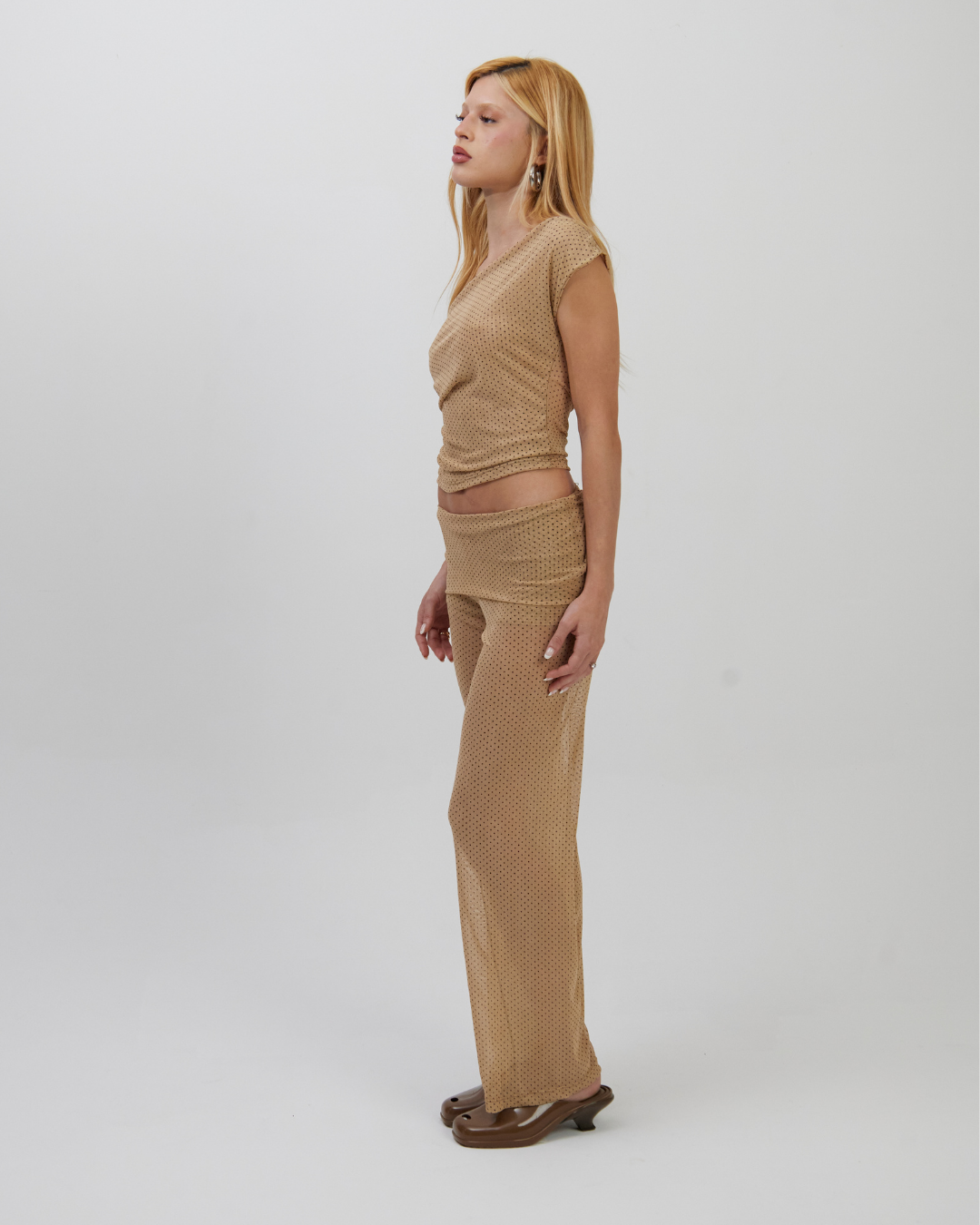DESCRIÇÃO: Calça reta confeccionada em tule. O detalhe do cós amplo com camada dupla de tule sobreposto traz movimento e alonga a silhueta, criando uma peça moderna e fluida. Possui alguma transparência; recomendamos usar com nosso mini shorts por baixo para o dia a dia ou se adequa perfeitamente para a praia com biquini por baixo, garantindo infinitas possibilidades de styling, da cidade à praia.