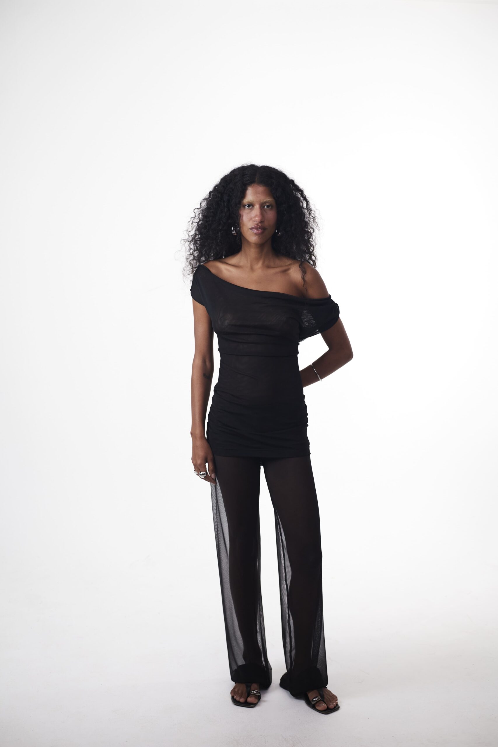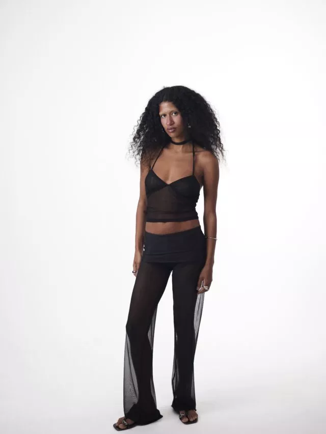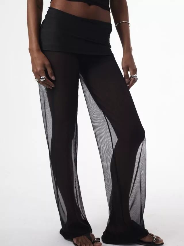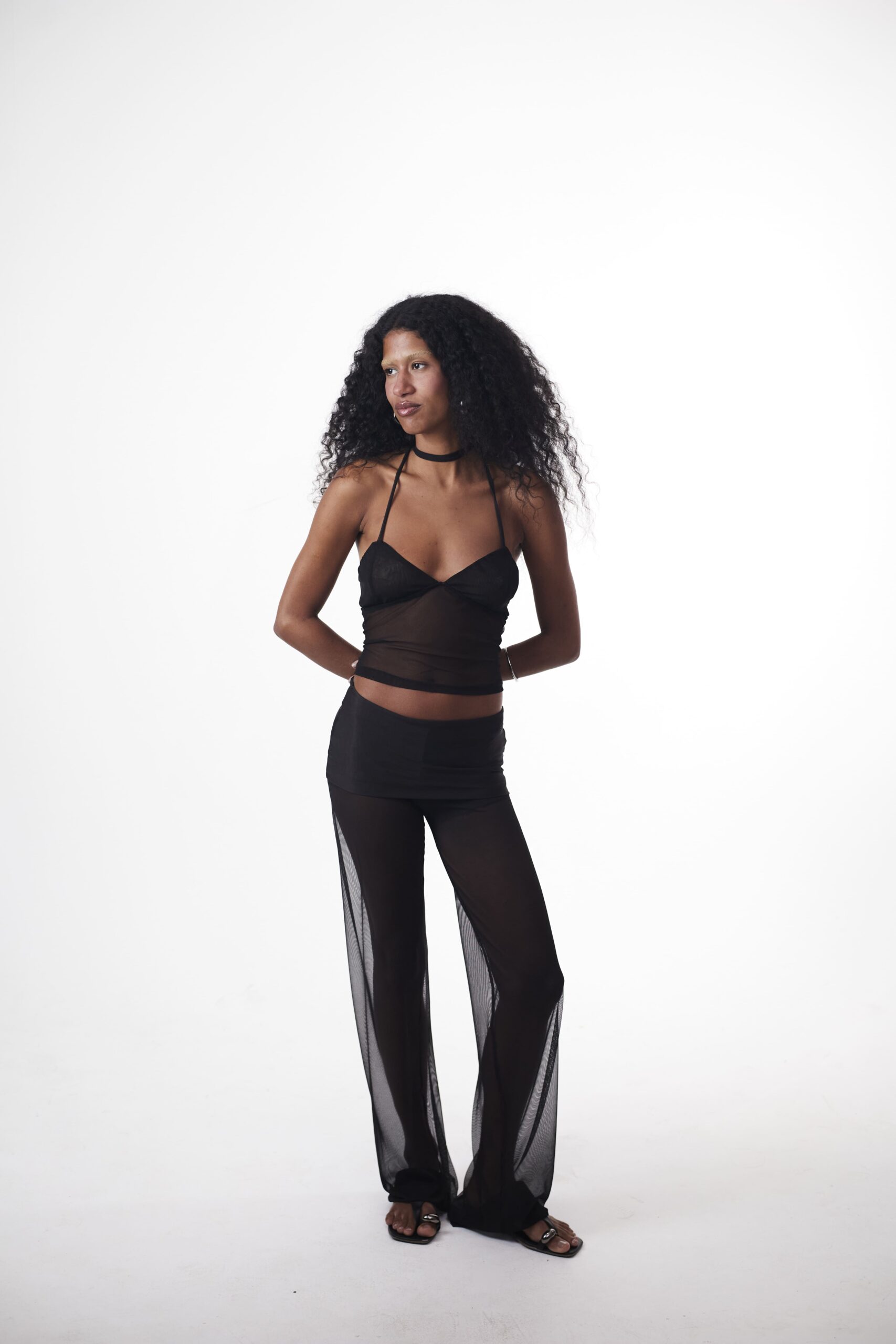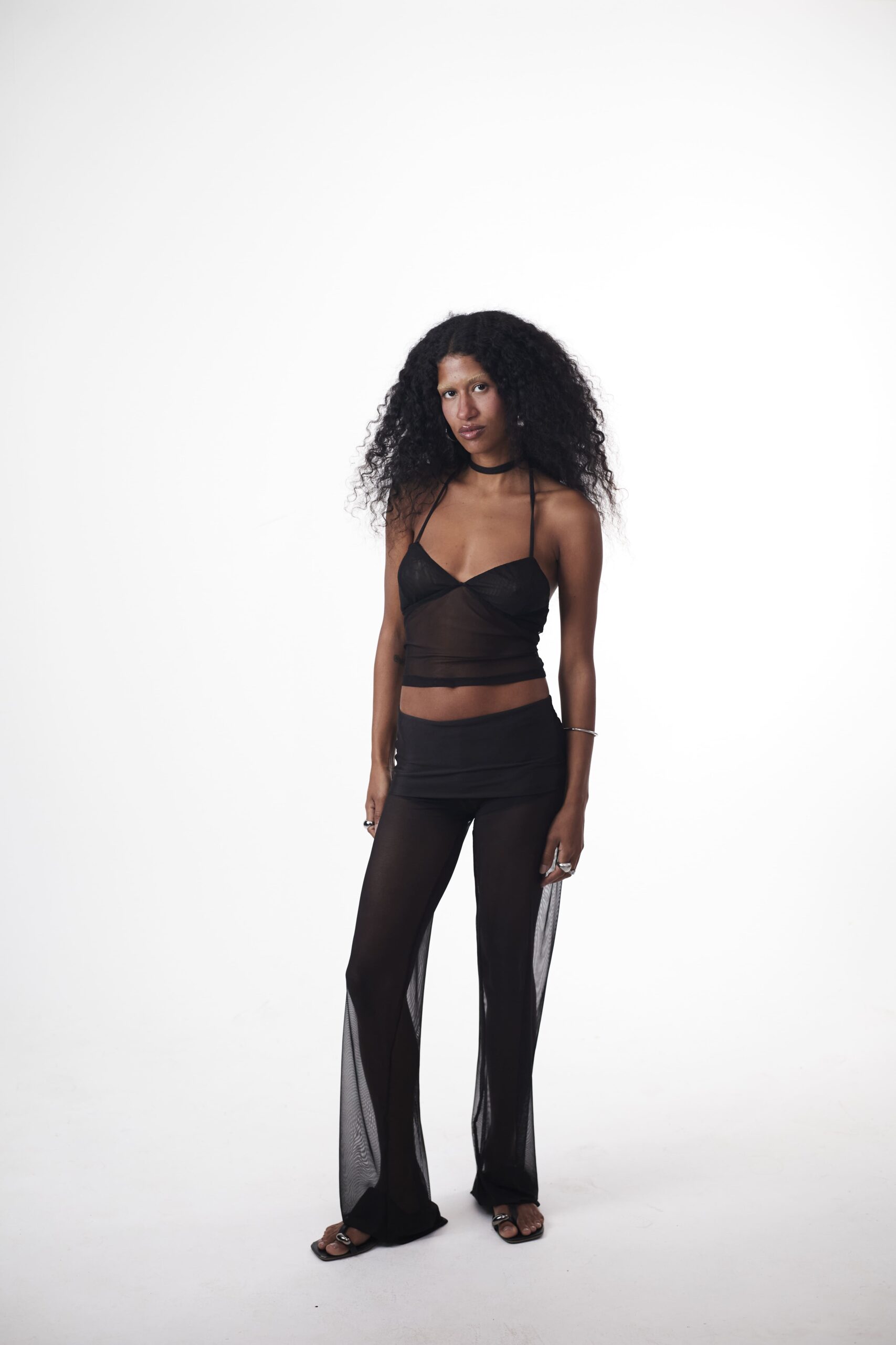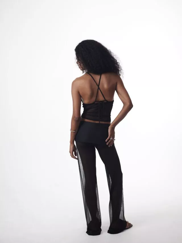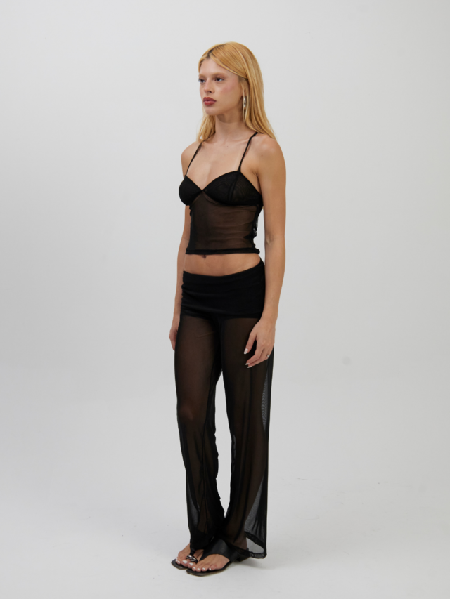 DESCRIÇÃO: Calça reta confeccionada em tule. O detalhe do cós amplo com camada dupla de tule sobreposto traz movimento e alonga a silhueta, criando uma peça moderna e fluida. Possui alguma transparência; recomendamos usar com nosso mini shorts por baixo para o dia a dia ou se adequa perfeitamente para a praia com biquini por baixo, garantindo infinitas possibilidades de styling, da cidade à praia.