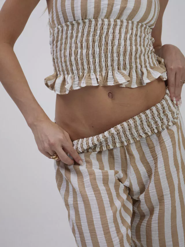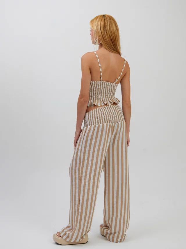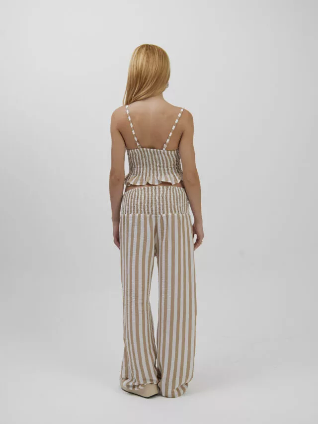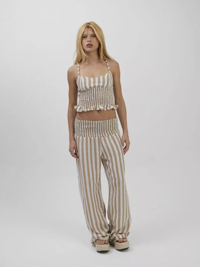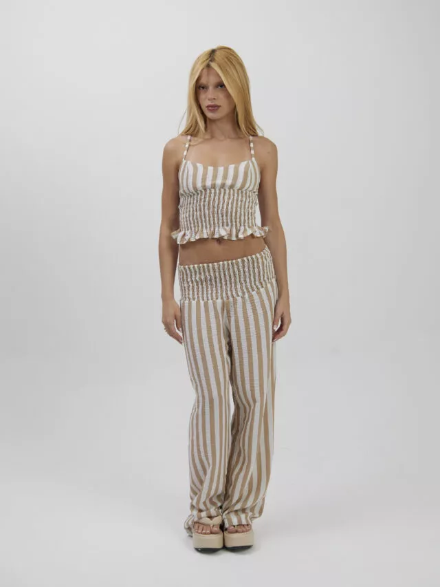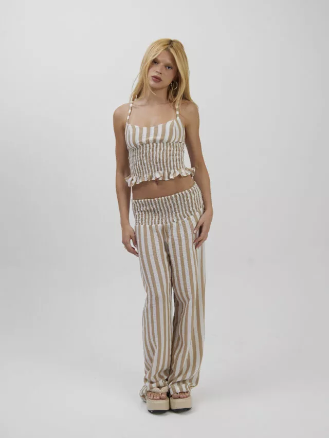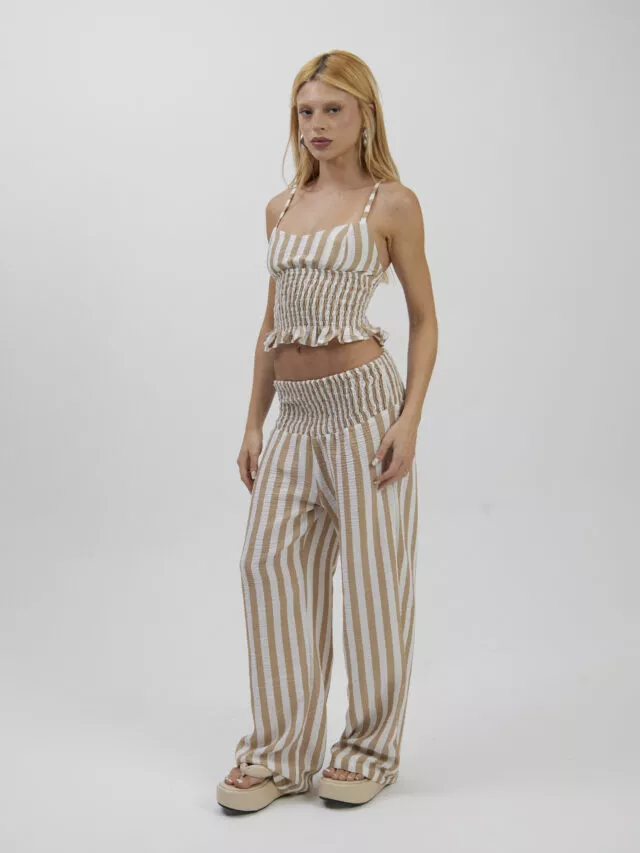 DESCRIÇÃO: A Calça Lastex é a definição de conforto com informação de moda. Feita em tecido leve com listras texturizadas, ela possui cós em lastex que se ajusta perfeitamente ao corpo sem apertar, trazendo praticidade e um caimento fluido. A modelagem reta alonga a silhueta e deixa o look perfeito para dias quentes ou pós-praia! Para um match perfeito, combine com o Top Alça Lastex.