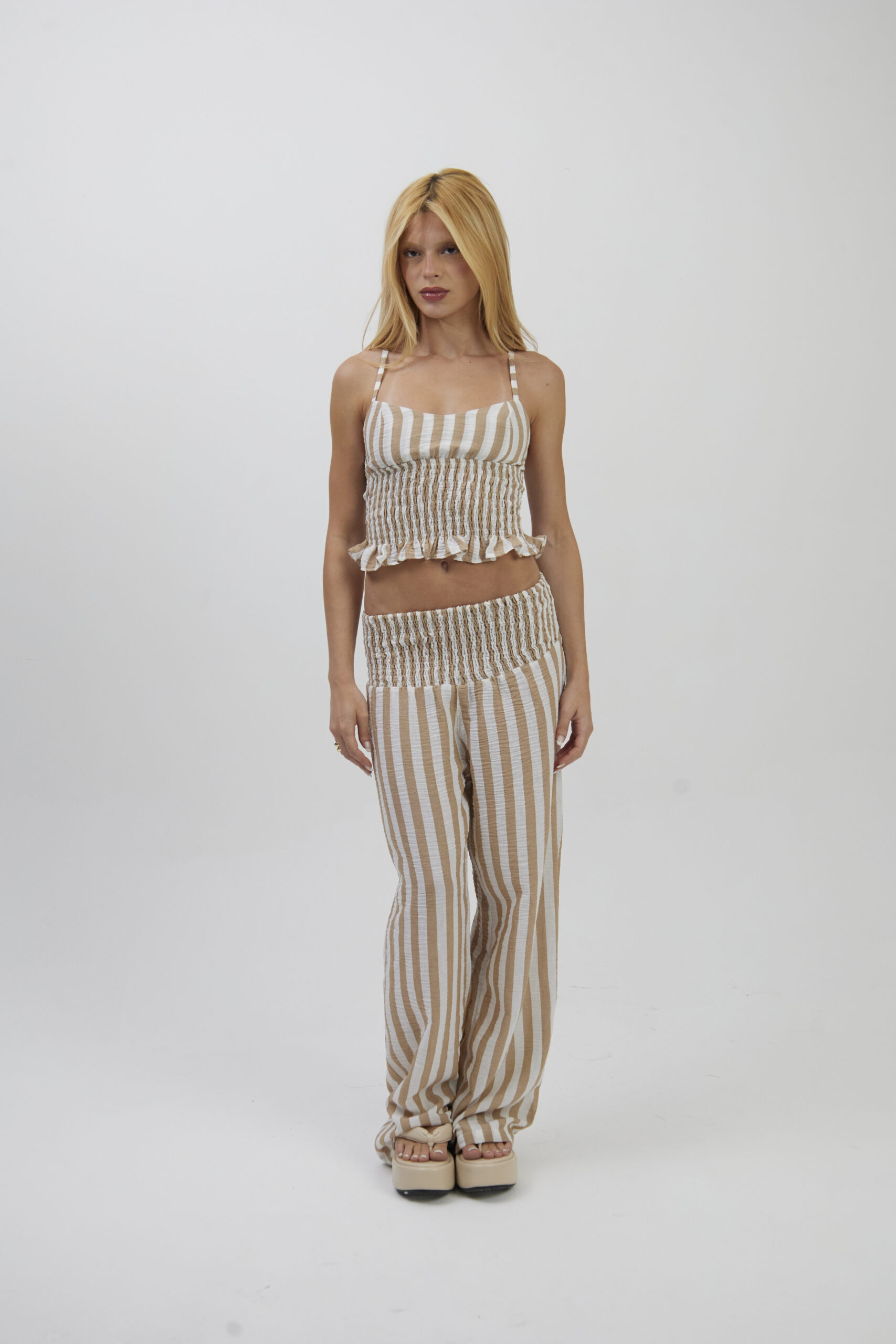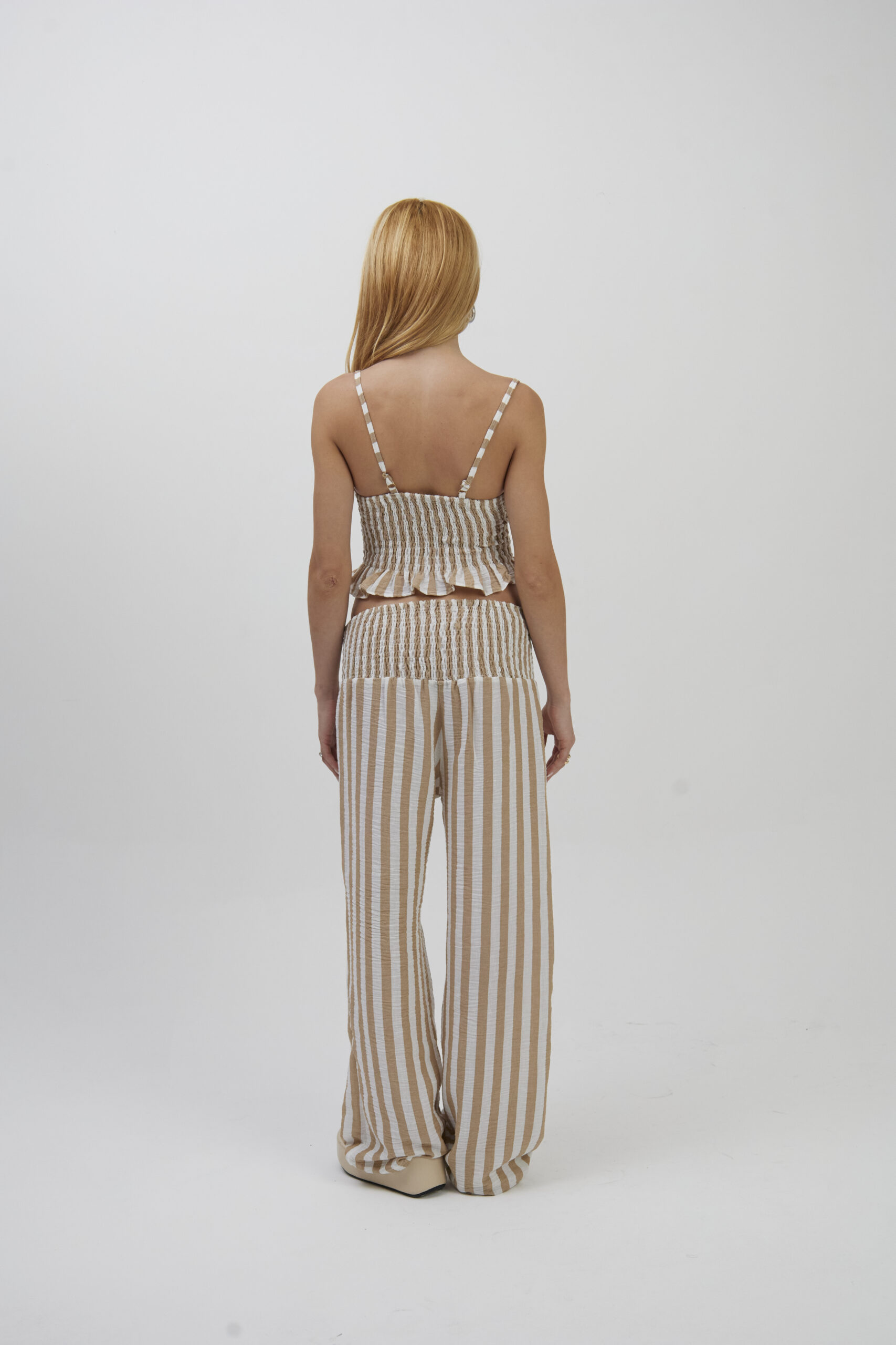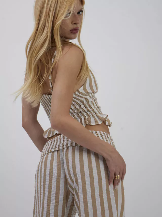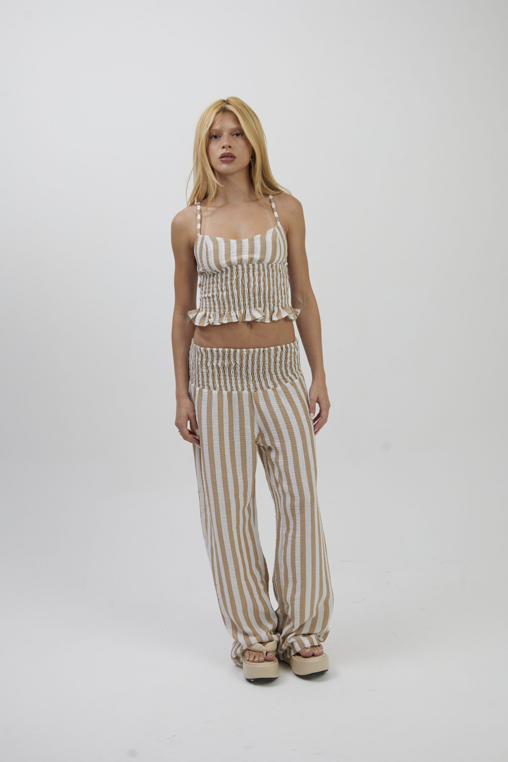 DESCRIÇÃO: A Calça Lastex é a definição de conforto com informação de moda. Feita em tecido leve com listras texturizadas, ela possui cós em lastex que se ajusta perfeitamente ao corpo sem apertar, trazendo praticidade e um caimento fluido. A modelagem reta alonga a silhueta e deixa o look perfeito para dias quentes ou pós-praia! Para um match perfeito, combine com o Top Alça Lastex.