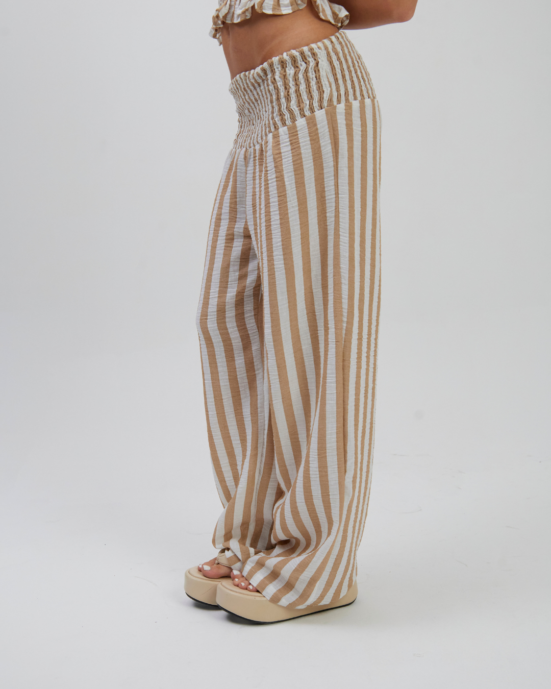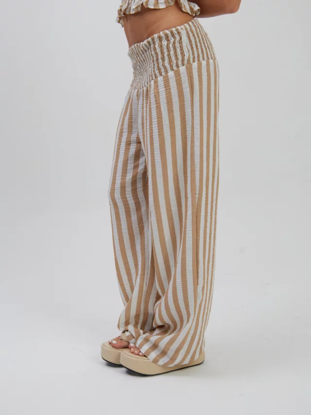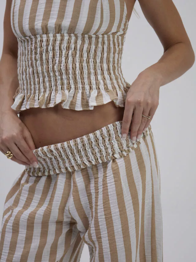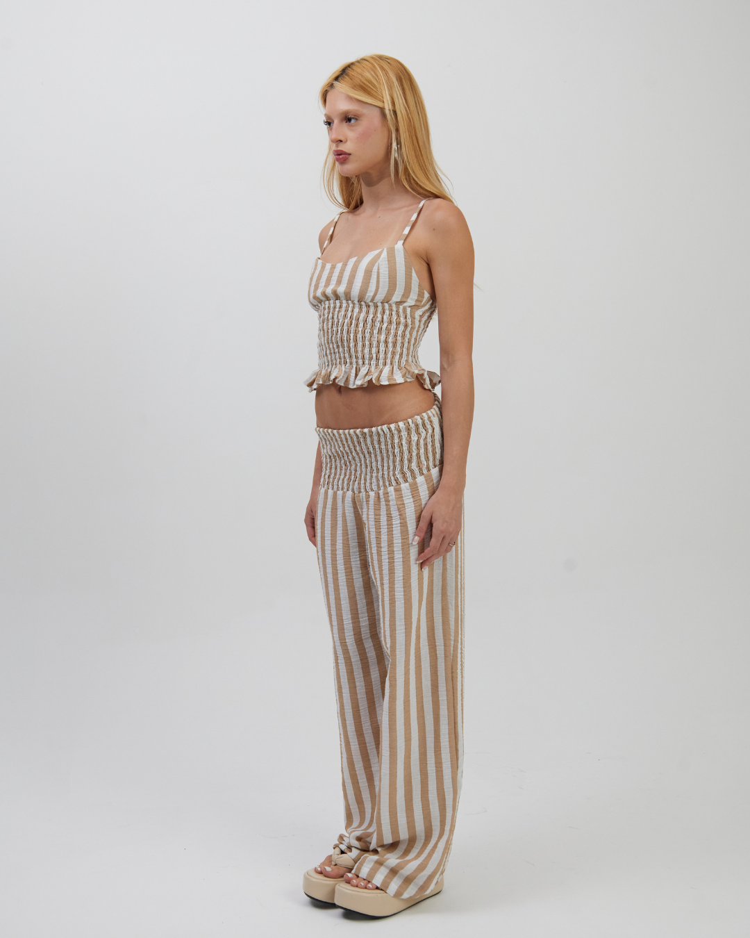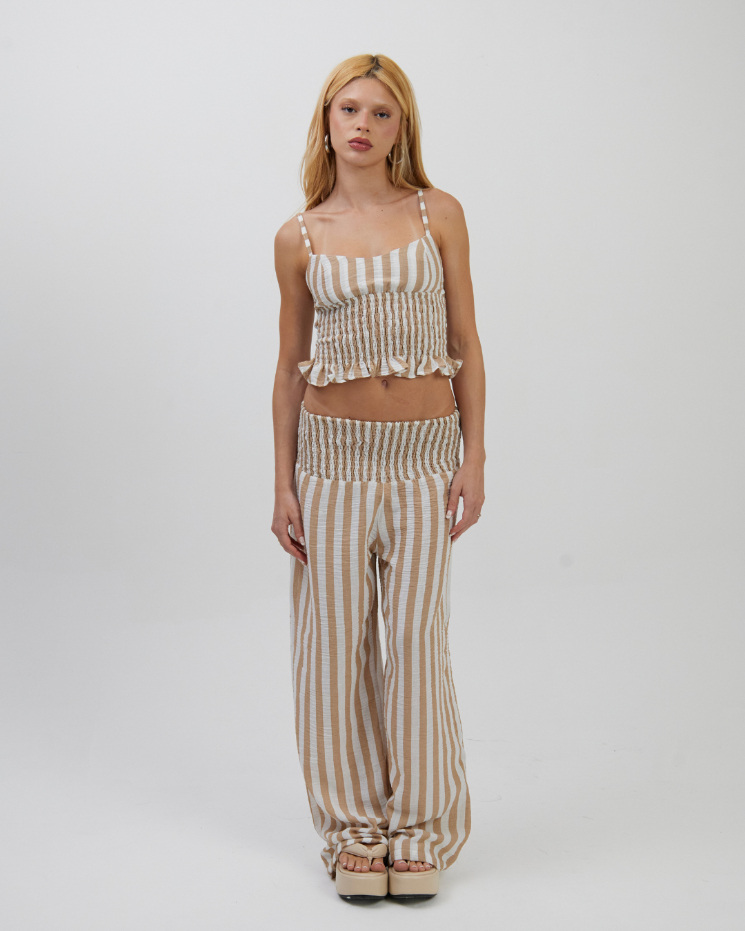 DESCRIÇÃO: A Calça Lastex é a definição de conforto com informação de moda. Feita em tecido leve com listras texturizadas, ela possui cós em lastex que se ajusta perfeitamente ao corpo sem apertar, trazendo praticidade e um caimento fluido. A modelagem reta alonga a silhueta e deixa o look perfeito para dias quentes ou pós-praia! Para um match perfeito, combine com o Top Alça Lastex.