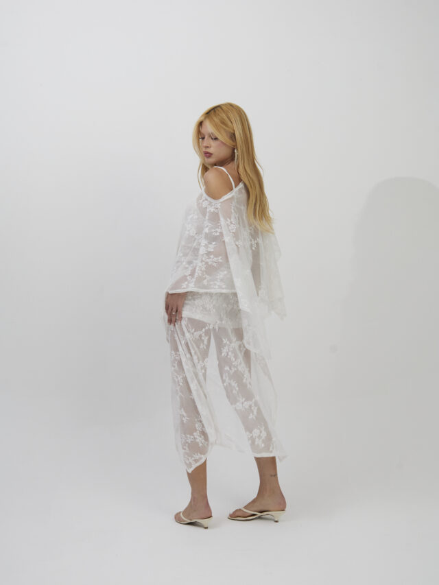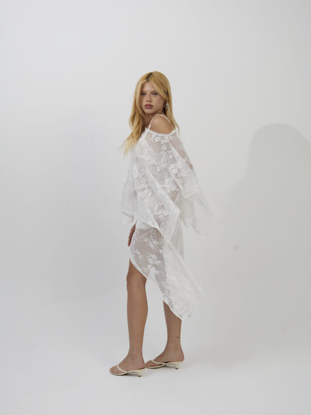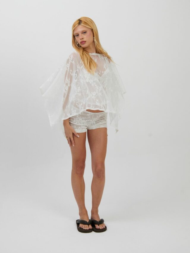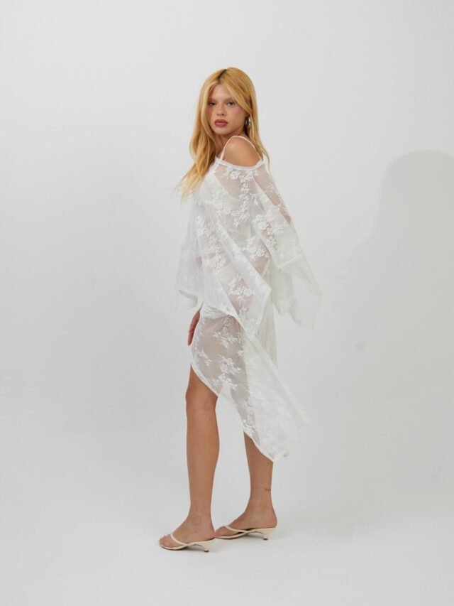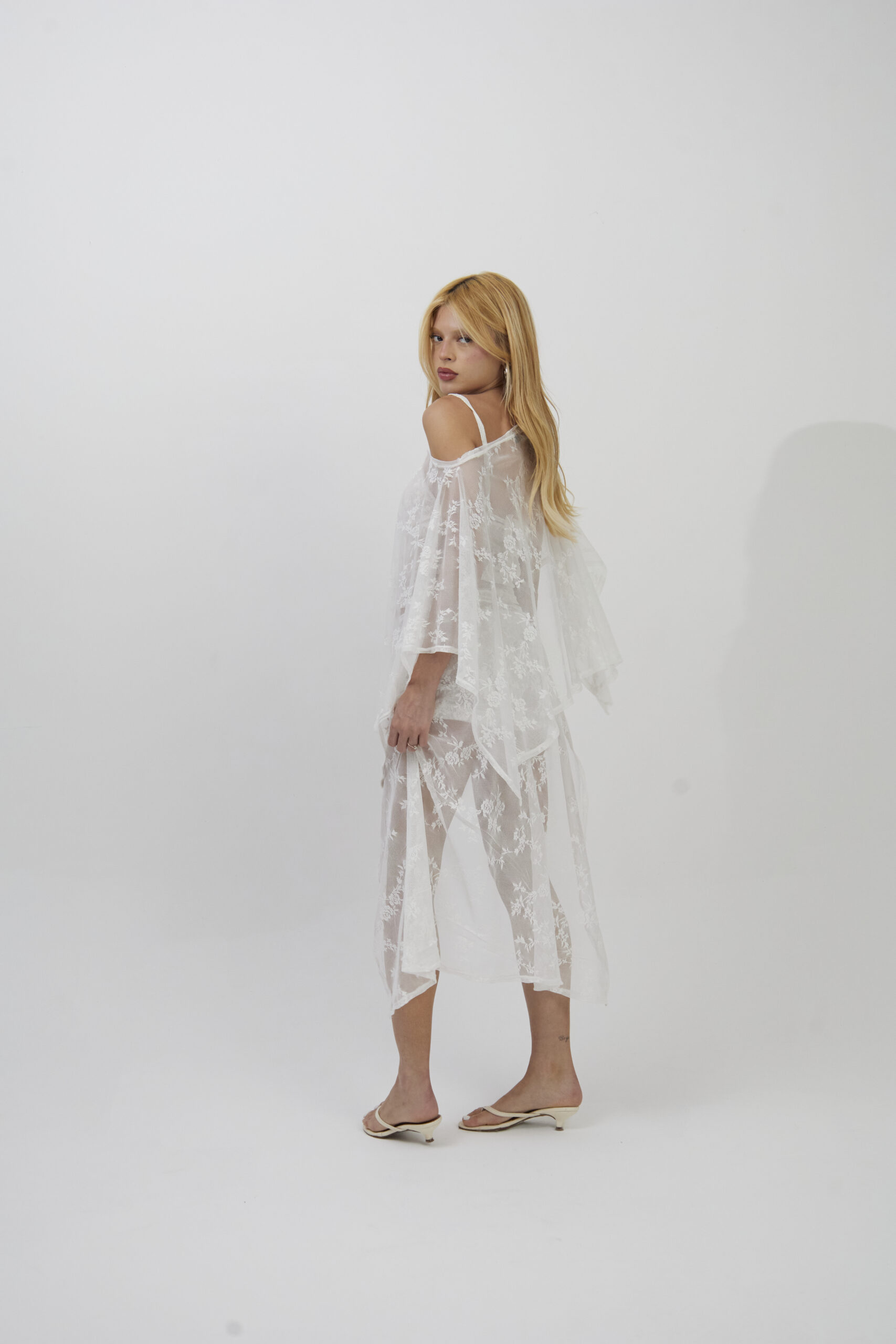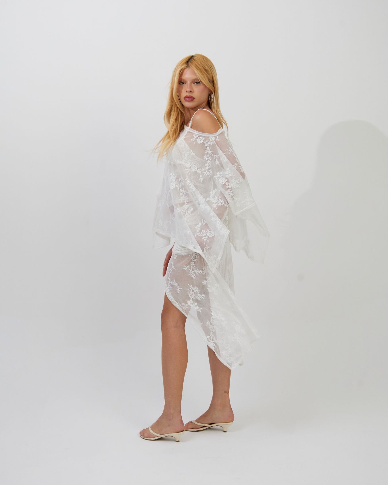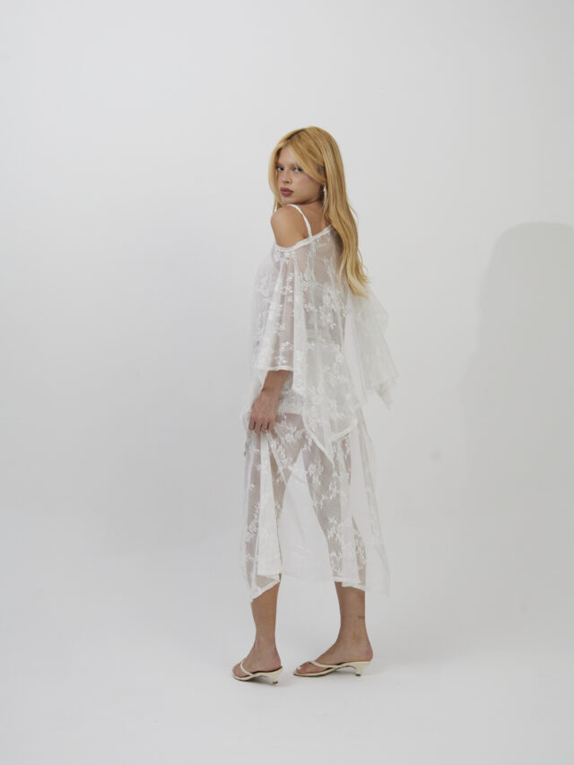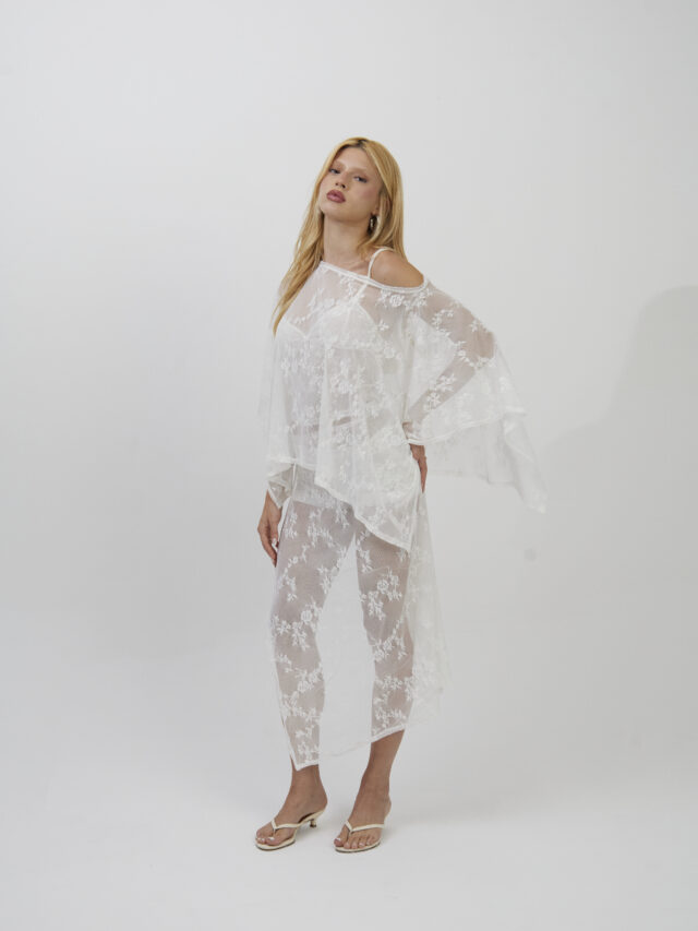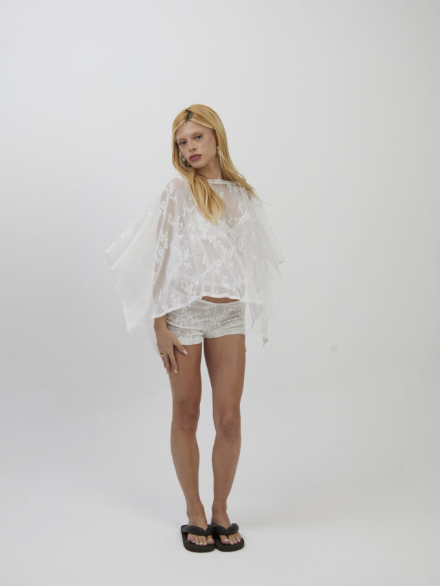 DESCRIÇÃO: Capa confeccionada em renda floral. A modelagem ampla cria movimento e permite diferentes formas de uso: ombro a ombro, assimétrica ou apenas como sobreposição. Por possuir transparência, funciona perfeitamente com biquíni e tops por baixo! Uma peça que traz textura, frescor e leveza.