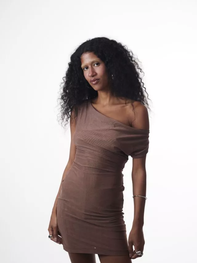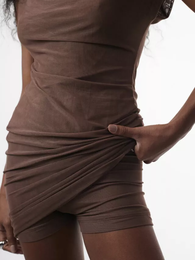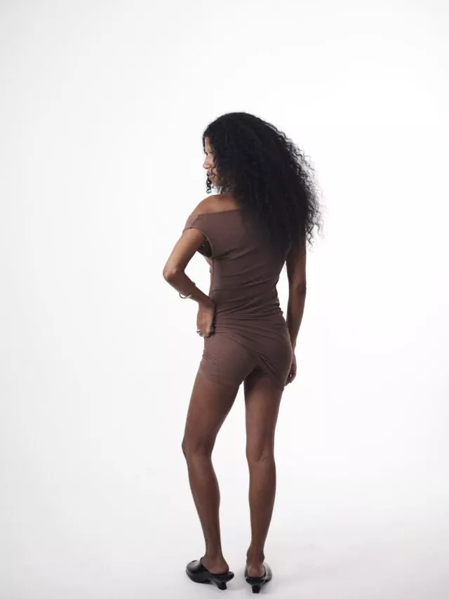 Mini Dress Tule Marrom