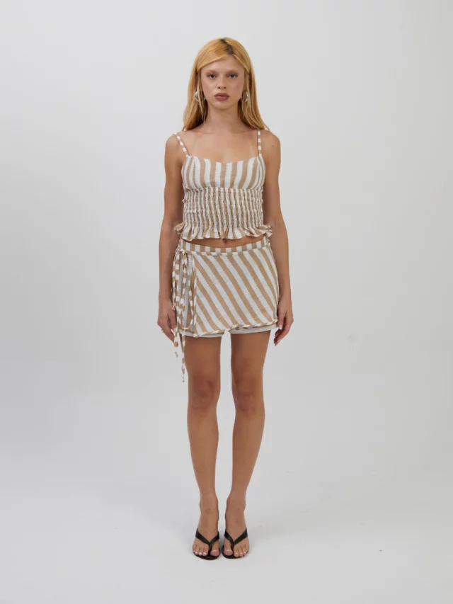 DESCRIÇÃO: Uma peça, múltiplas possibilidades. A Saia Lenço Listrada possui modelagem fluida e amarração lateral que permite ajuste perfeito na cintura. Versátil, pode ser usada como saia para um look leve, como lenço para adicionar textura e estilo a diferentes composições, ou até mesmo como saída de praia, trazendo um toque sofisticado e fresh para dias ensolarados. Perfeita para quem busca uma peça com informação de moda!