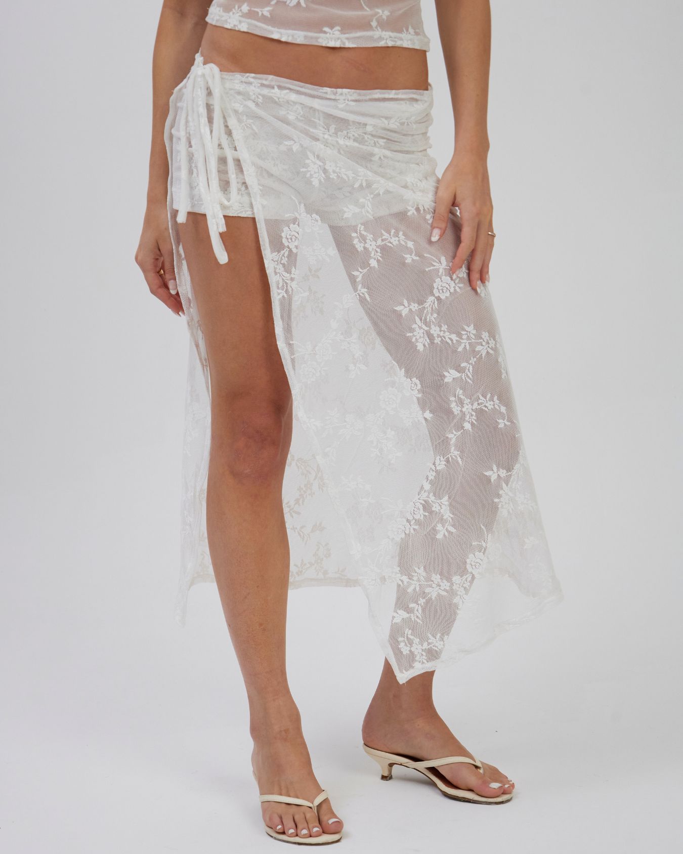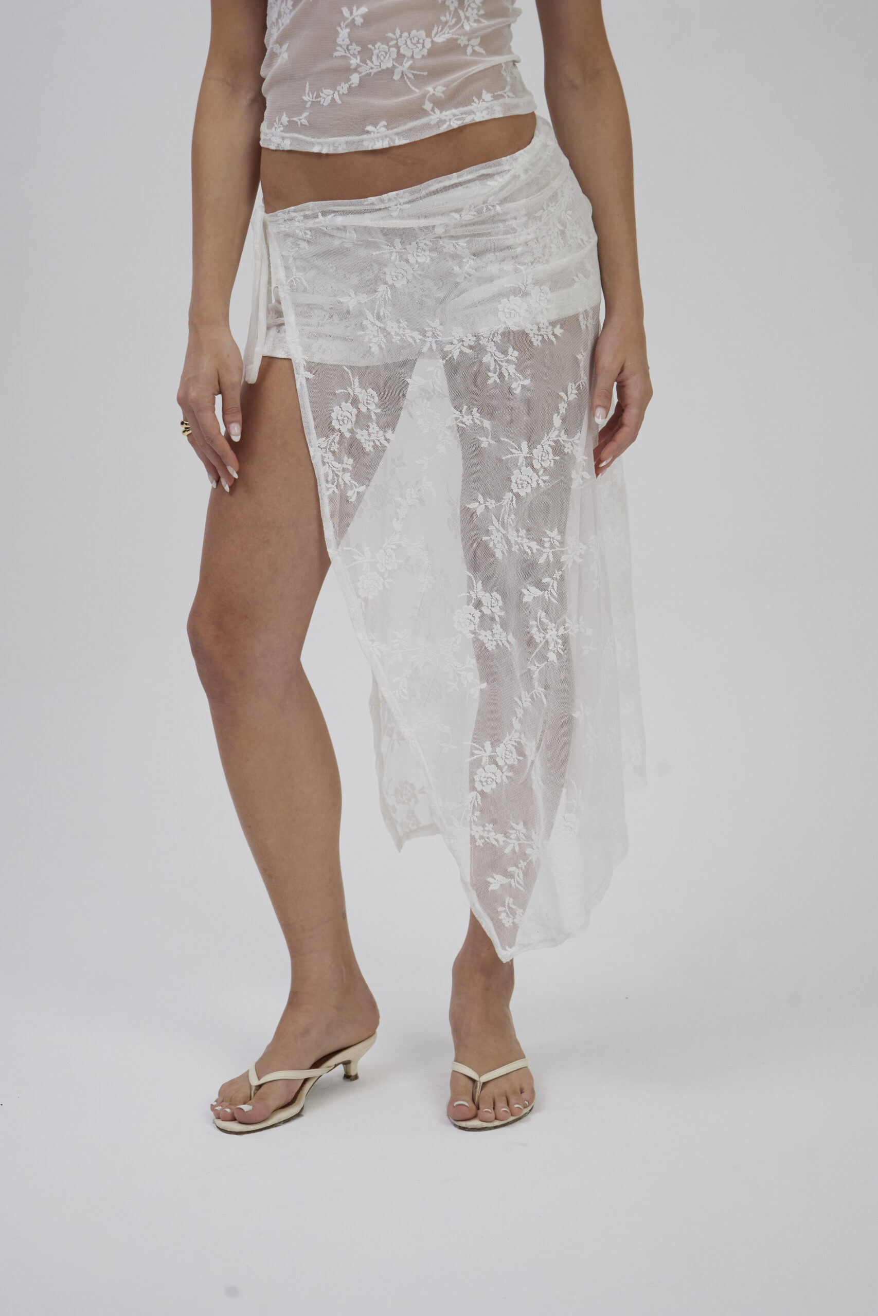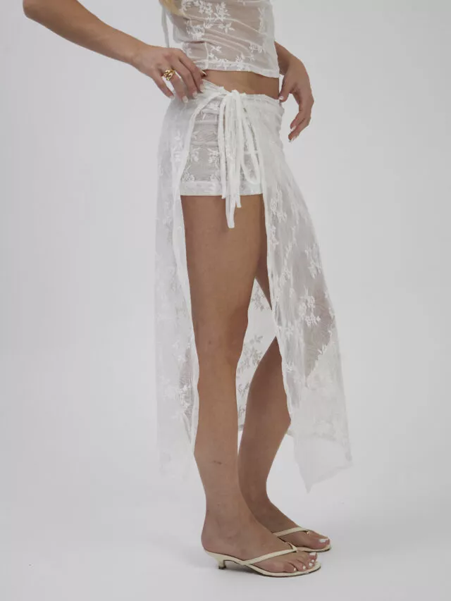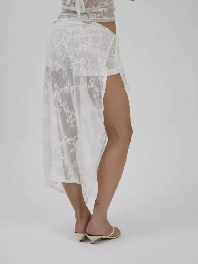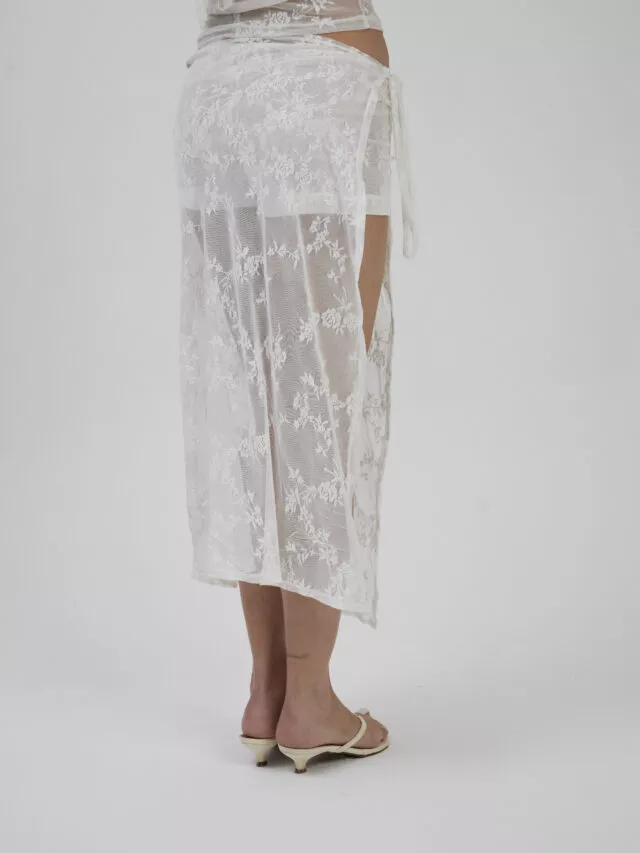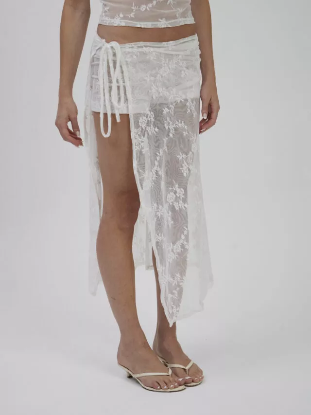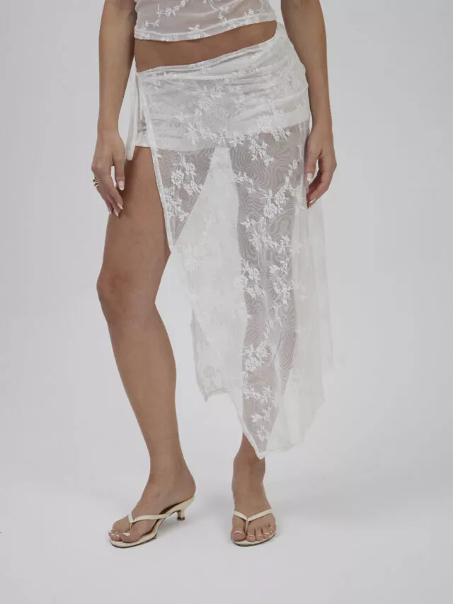DESCRIÇÃO: A Saia Lenço Longa Renda Off é confeccionada em renda floral leve e transparente, com caimento fluido e amarração lateral que permite ajuste perfeito na cintura. Pode ser usada como saia para uma composição fresh, como saída de praia ou como sobreposição para looks modernos.