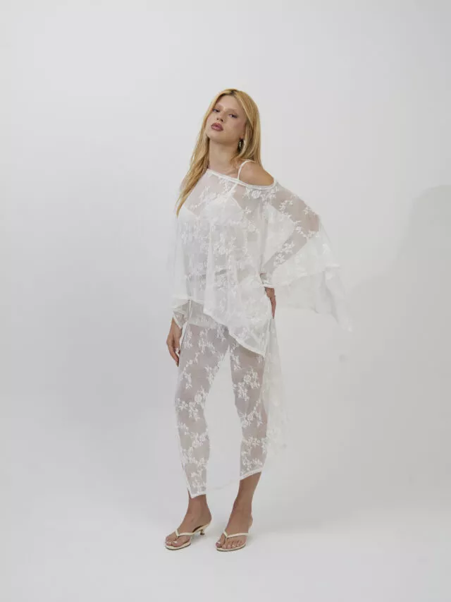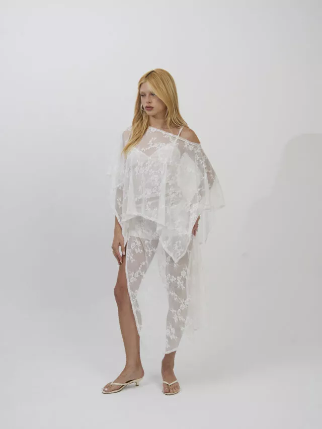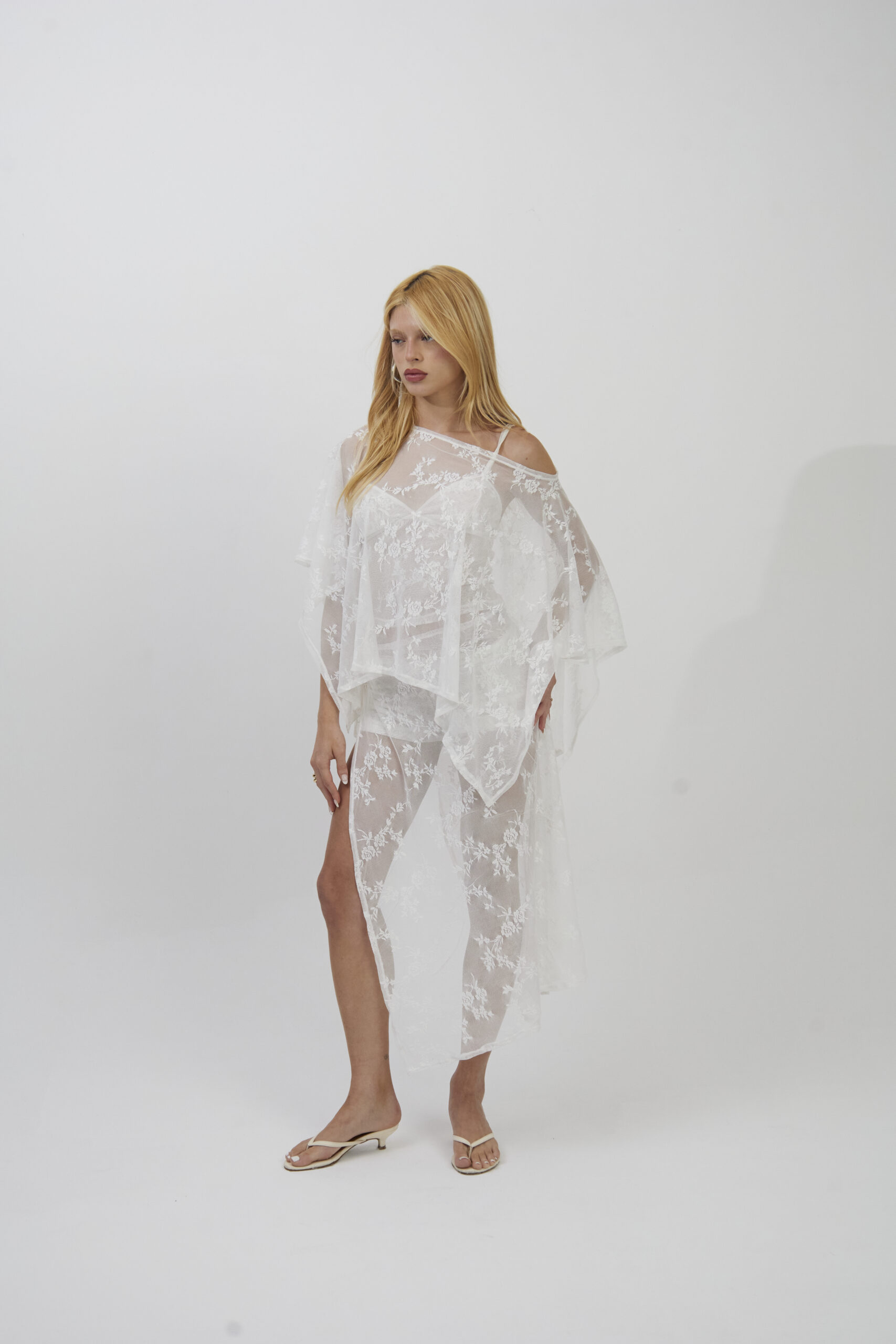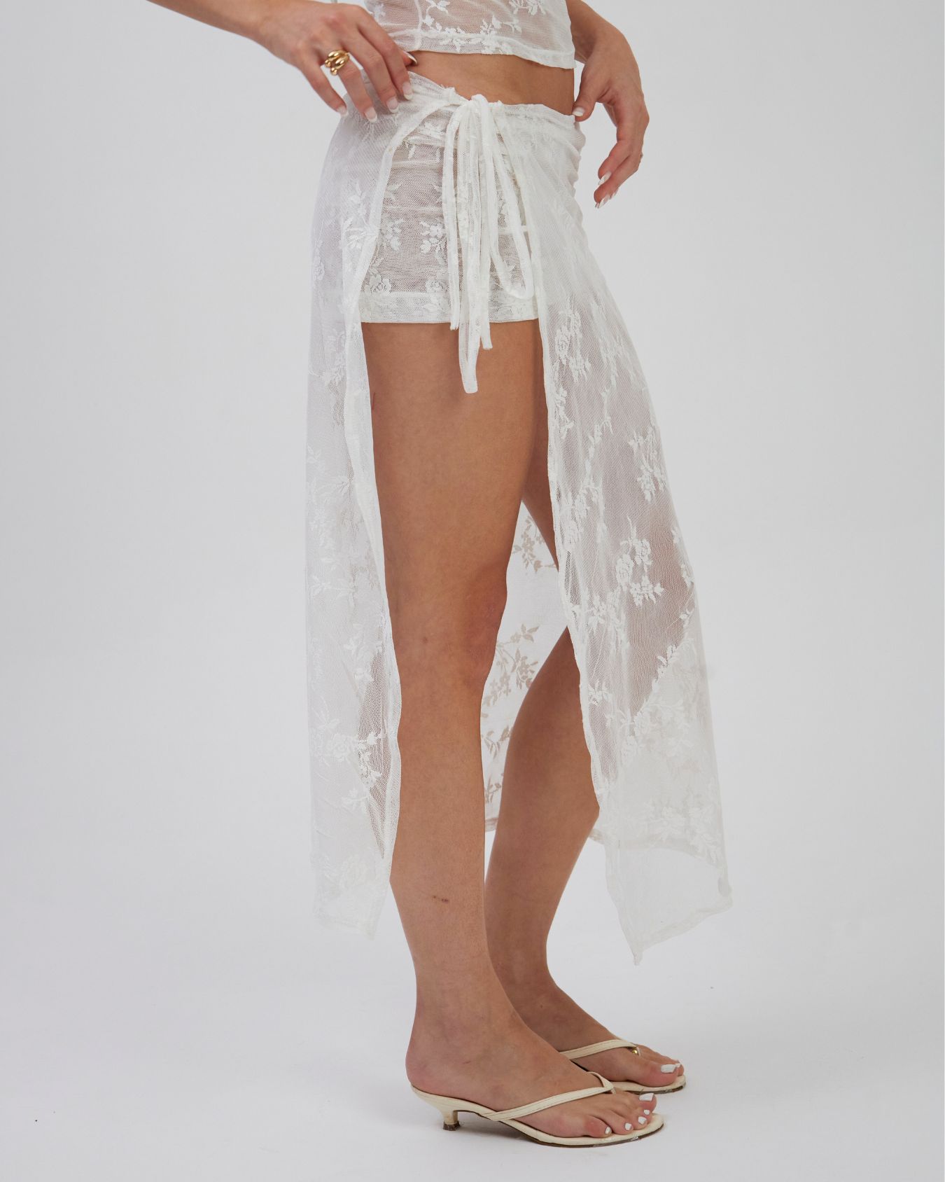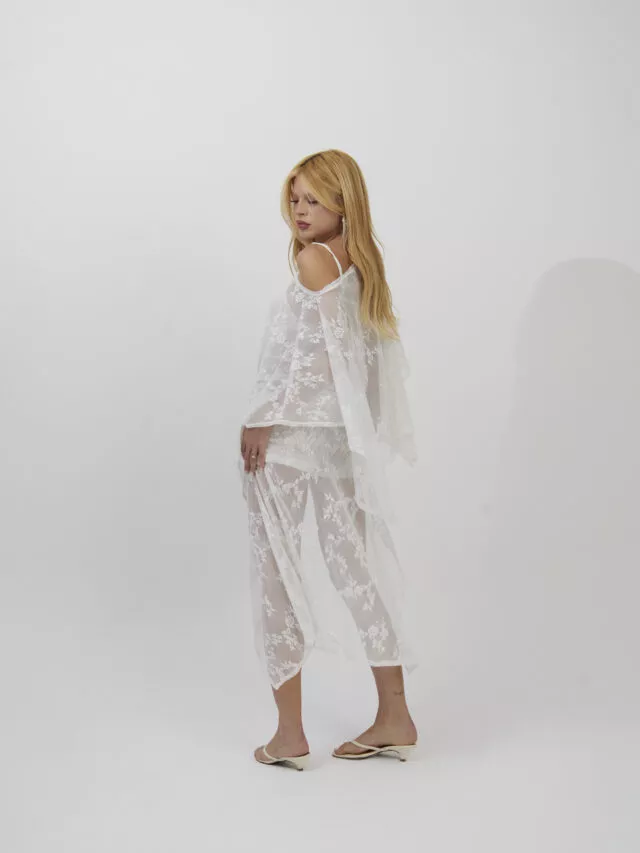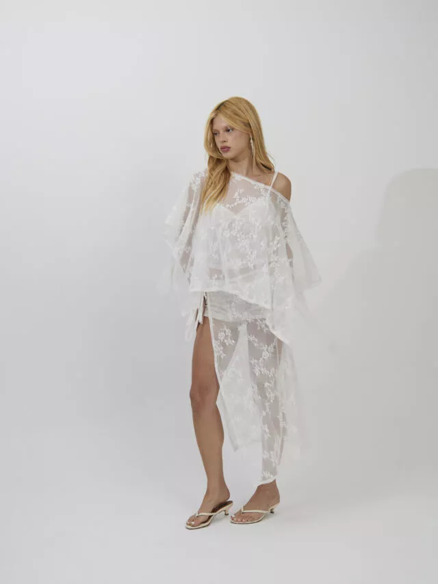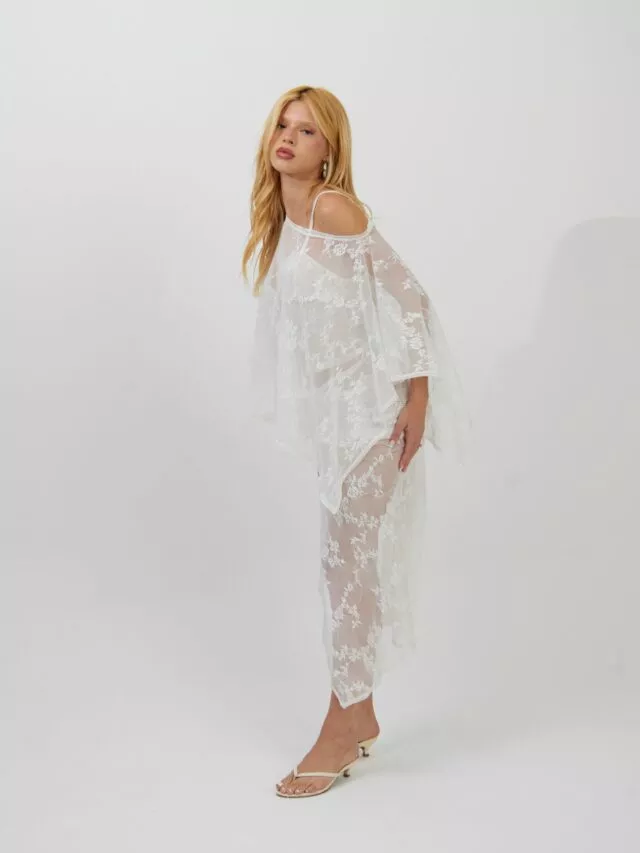 DESCRIÇÃO: A Saia Lenço Longa Renda Off é confeccionada em renda floral leve e transparente, com caimento fluido e amarração lateral que permite ajuste perfeito na cintura. Pode ser usada como saia para uma composição fresh, como saída de praia ou como sobreposição para looks modernos.