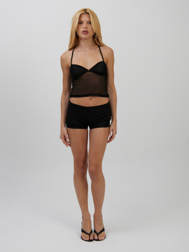 Top V Tule Mini Poá Preto